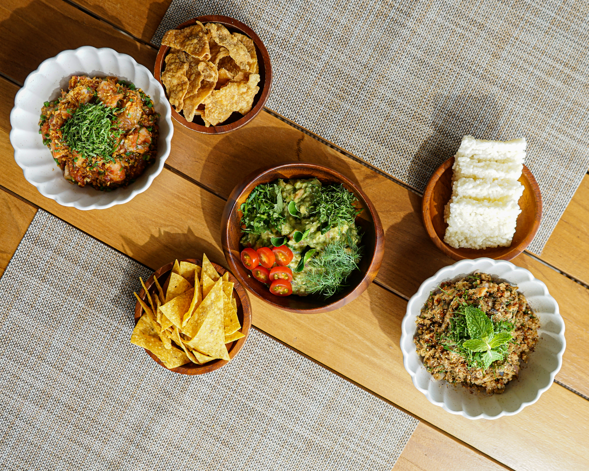 The River Club redefines comfort food with fusion bites like Moo Krob Prik Nahm Pla Taco, Isan Tomato Relish, Isan Guacamole and Tom Yam Ceviche, crafted by Spanish chef Pepe Jiménez . The bar cools things down with tropical, juicy cocktails—think margaritas and tiki-style sips like The Jar of Joy, Cactus Rocket & Friend, and Beats of Watermelon.